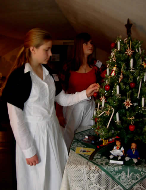 A Sister from the School Sisters of Notre Dame explains some of the ornaments which are unique to Bavaria. |