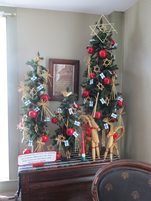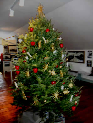 Christmas tree with German ornaments decorates the ballroom of the Dousman Stagecoach Inn Museum. |