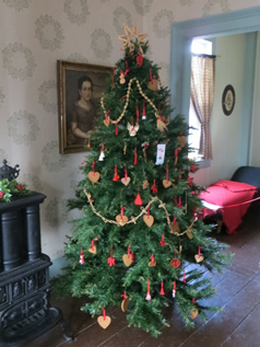 Swedish Christmas tree with gingerbread ornaments in the ladies parlor |