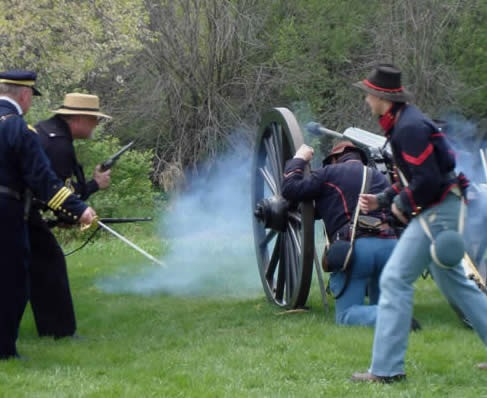 | Union troops fire canon. |